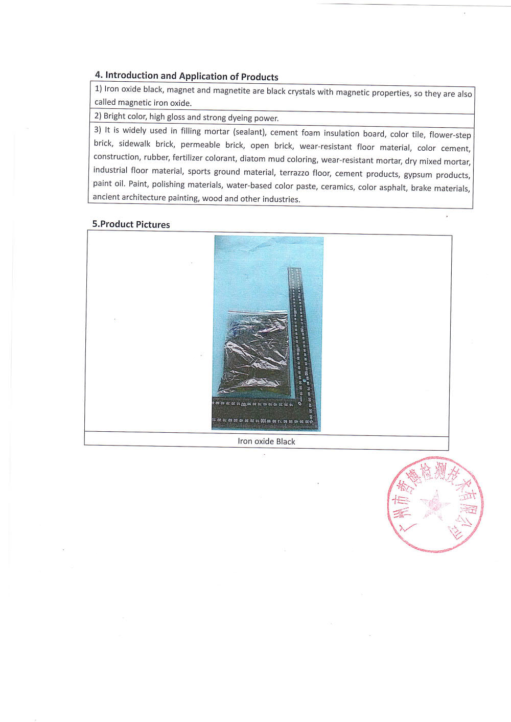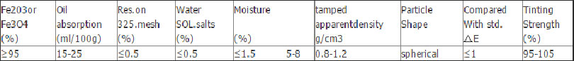 Material properties: it has saturated blue ink light black, covering power and tinting strength is high, the role of light and atmosphere is very stable, not soluble in alkali, slightly soluble in acid, is completely dissolved in concentrated acid, heat-resisting performance is poorer, at temperatures higher than 90 ℃ under the condition of easy oxidation, generate red iron oxide, it has very strong magnetic, can be magnet attracted.
