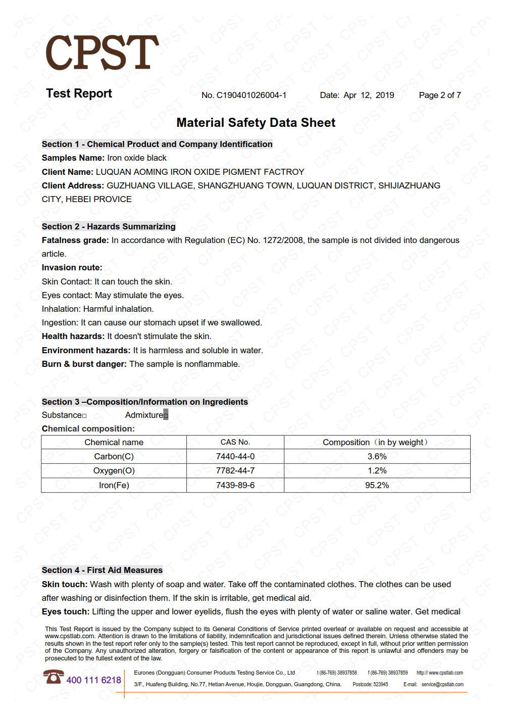 1. According to the ISO9001 quality system, the company adopts ISO1248 and EN12878 quality standards, and has developed a complete raw material control and strict production control, a fine inspection system and a detailed marking and tracking system to ensure the consistency of iron oxide pigment quality.2. Quality Assurance System: ISO9001:2008