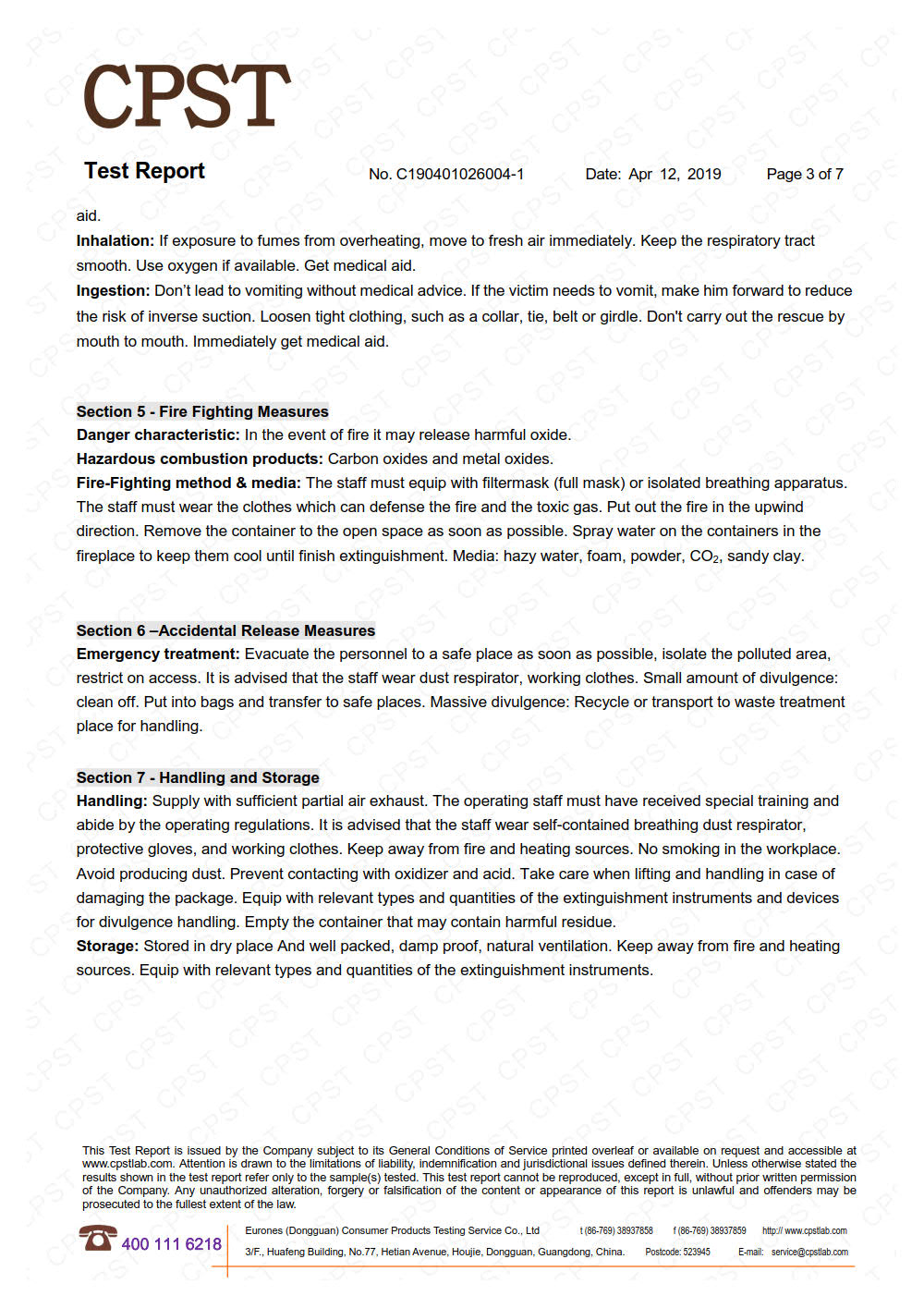 All the data are based on the existing theoretical basis. We guarantee that the product does not have any characteristics of dangerous goods and does not affect the establishment of effective contractual relationship.