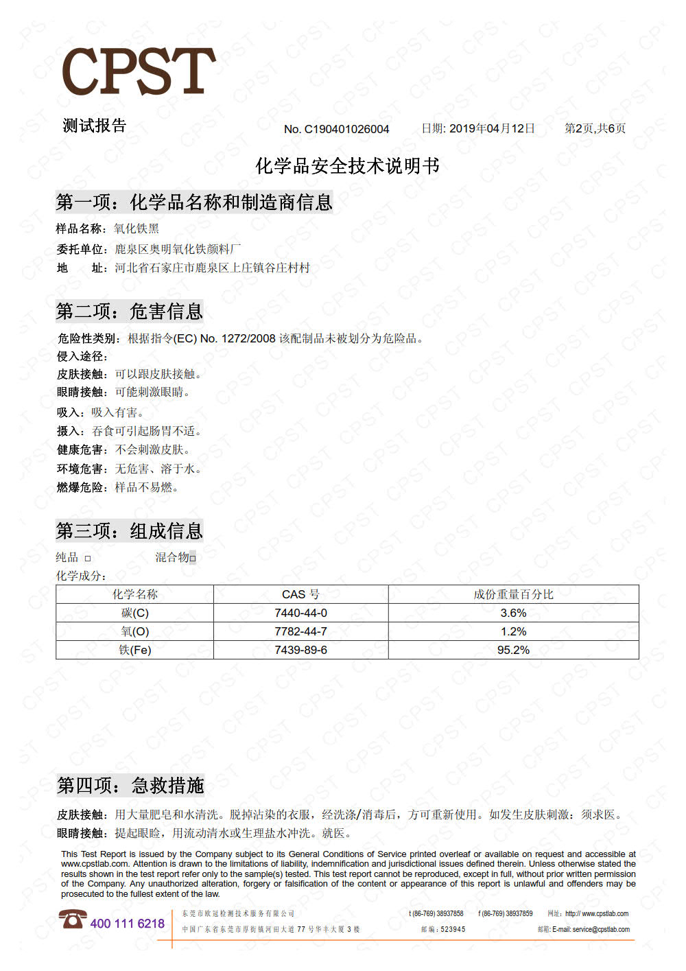 貯存于通風(fēng),干燥的庫房中。包裝應(yīng)密封、防潮。避免高溫,并與酸、堿物品隔離存放。按上述保管條件,未拆包裝的產(chǎn)品有效貯存期為三年。六、本公司氧化鐵黑的產(chǎn)品質(zhì)量把控