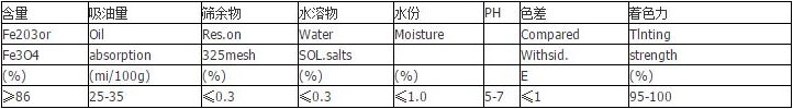 物質特性:化學性質比較穩(wěn)定的堿性氧化物,色澤鮮明而純潔,具有良好的顏料特性,如著色力,遮蓋力均很高。耐光性達7~8級。不溶于堿,微溶于酸,在濃鹽酸中可完全溶解。熱穩(wěn)定性較差,加熱至150~200℃時開始脫水,當溫度升至270~300℃脫水迅速并變成為鐵紅Fe2O3。
